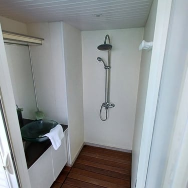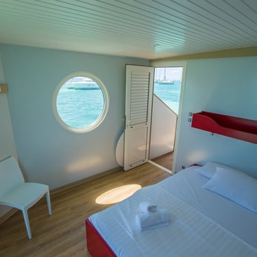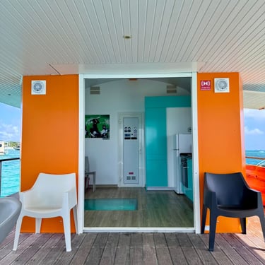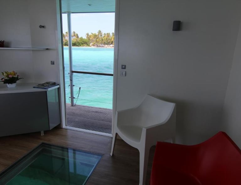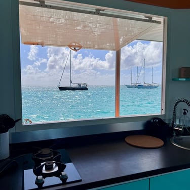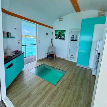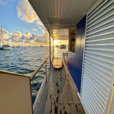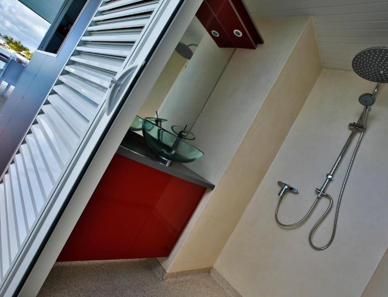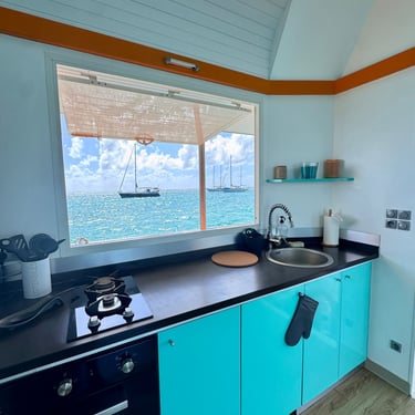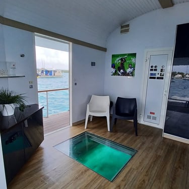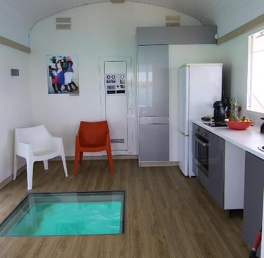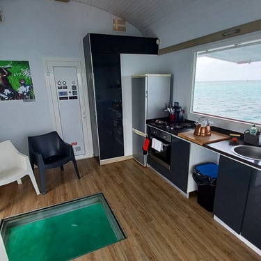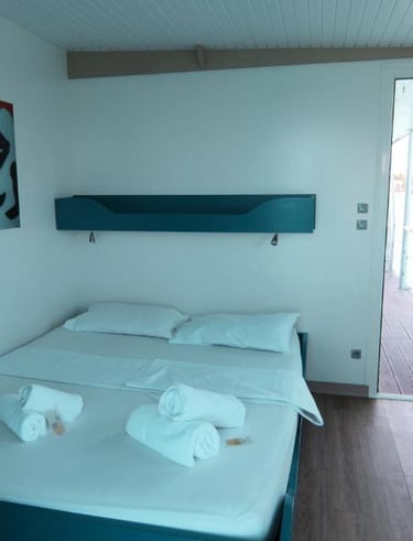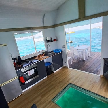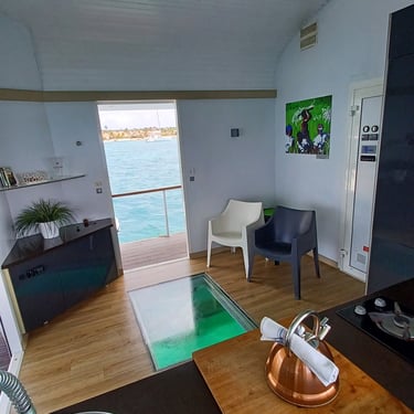 L'aqualodge est située à proximité de plusieurs plages , dispose d'une terrasse roof-top en deck. Cet hébergement offre une vue sur la mer et possède un balcon.