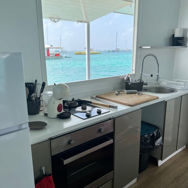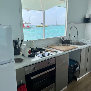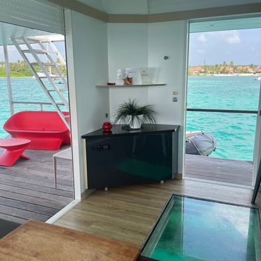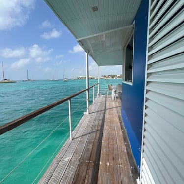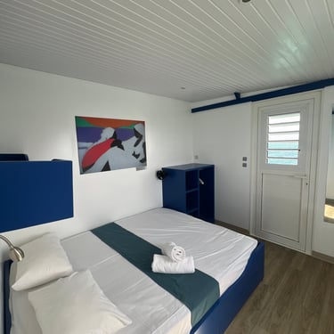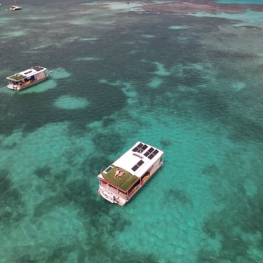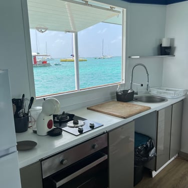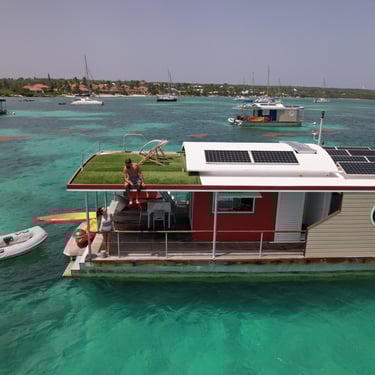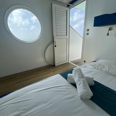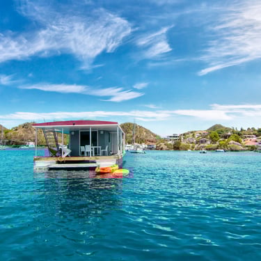 L'aqualodge est située à proximité de plusieurs plages , dispose d'une terrasse roof-top en deck. Cet hébergement offre une vue sur la mer et possède un balcon.